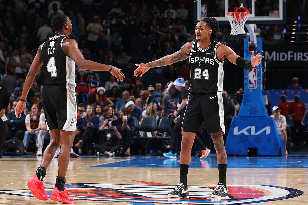 马刺半个月三杀卫冕冠军雷霆 取得联盟最长8连胜 admin 2025年12月26日 09:30 47 0 搜狐体育消息,北京时间12月26日,NBA圣诞大战,马刺击败雷霆,取得八连胜。马刺战绩来到23胜7负,继续稳居西部第二,联盟第三,距离雷霆迫近到2.5胜场差。本场比赛的胜利,是半个月来,马刺第三次击败雷霆。